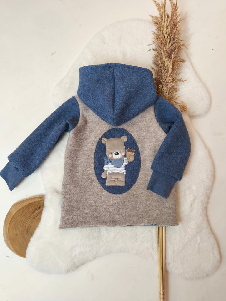 Die Jacke fällt großzügig aus, ein dicker Pulli passt leicht drunter und wächst somit auch lange mit.