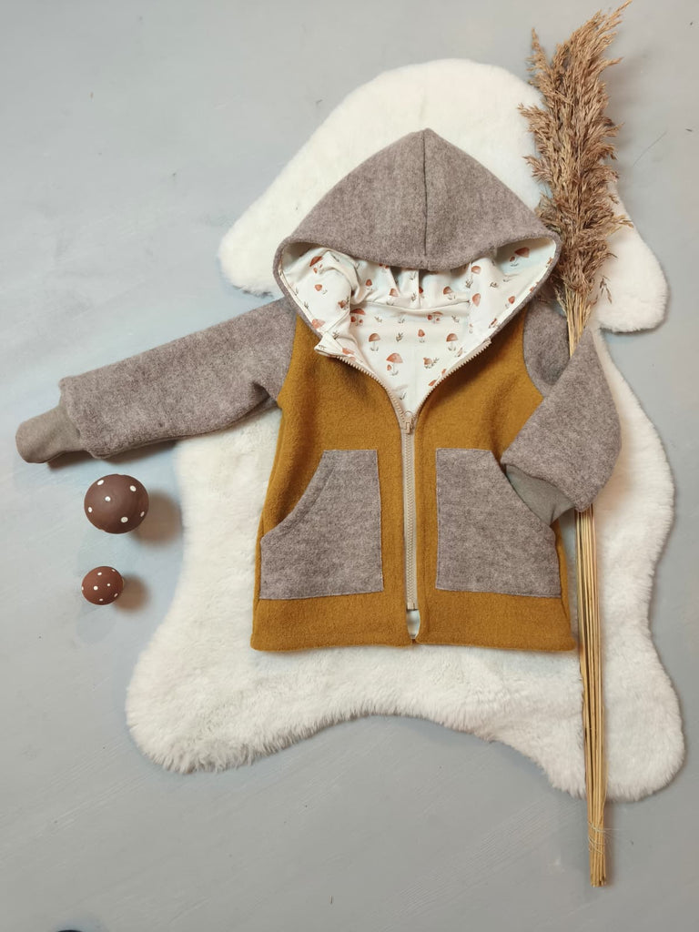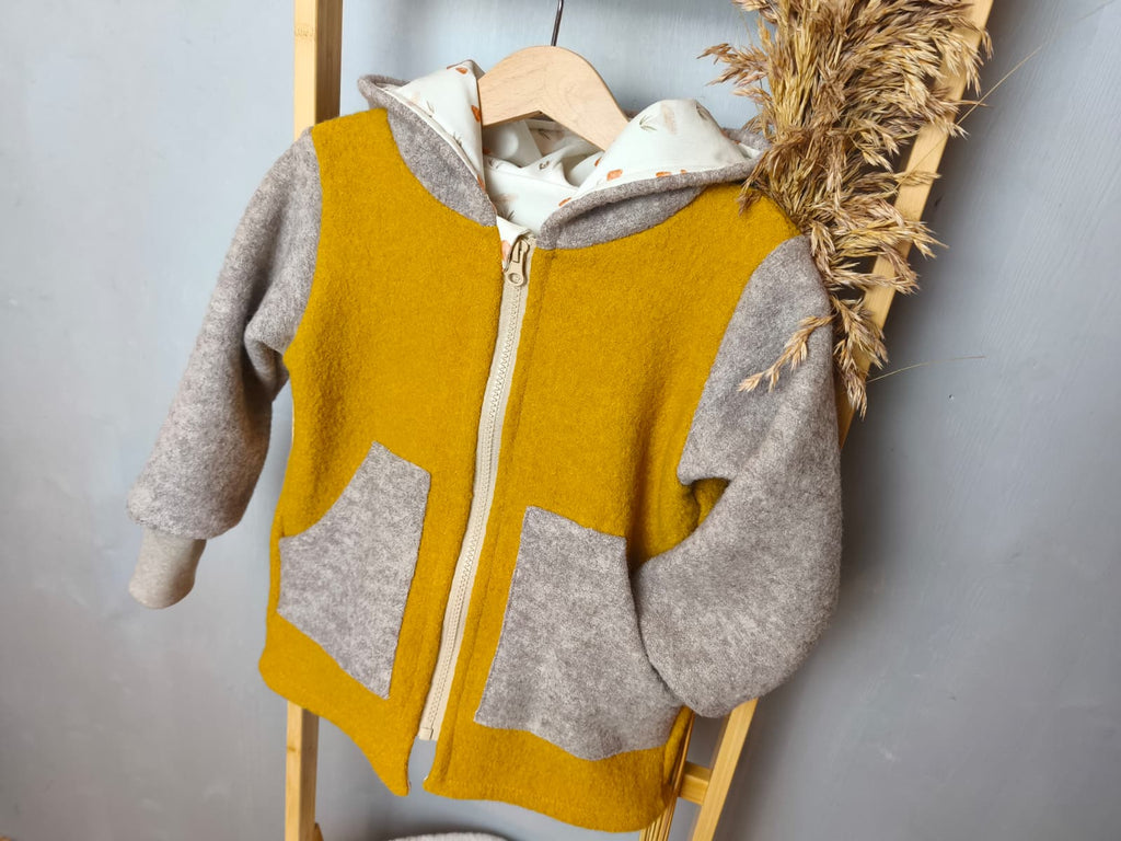 Der perfekte Begleiter für kühlere Tage aus 100% Schurwolle gefüttert mit Baumwolljersey! Die Jacke ist komplett nahtverdeckt gearbeitet, es gibt also keine störenden Nähte.
